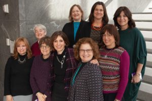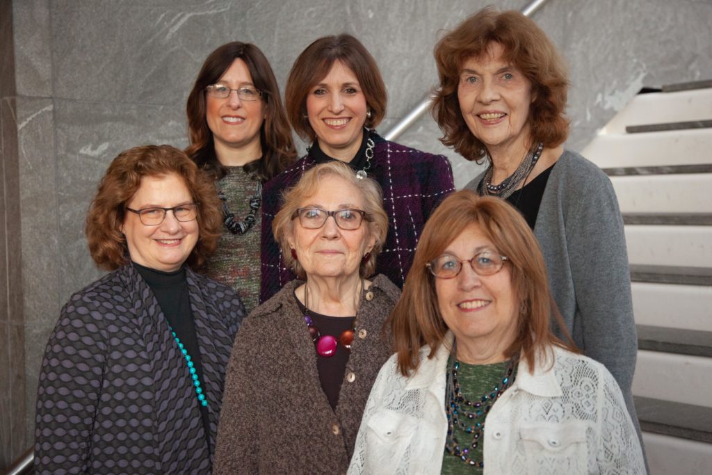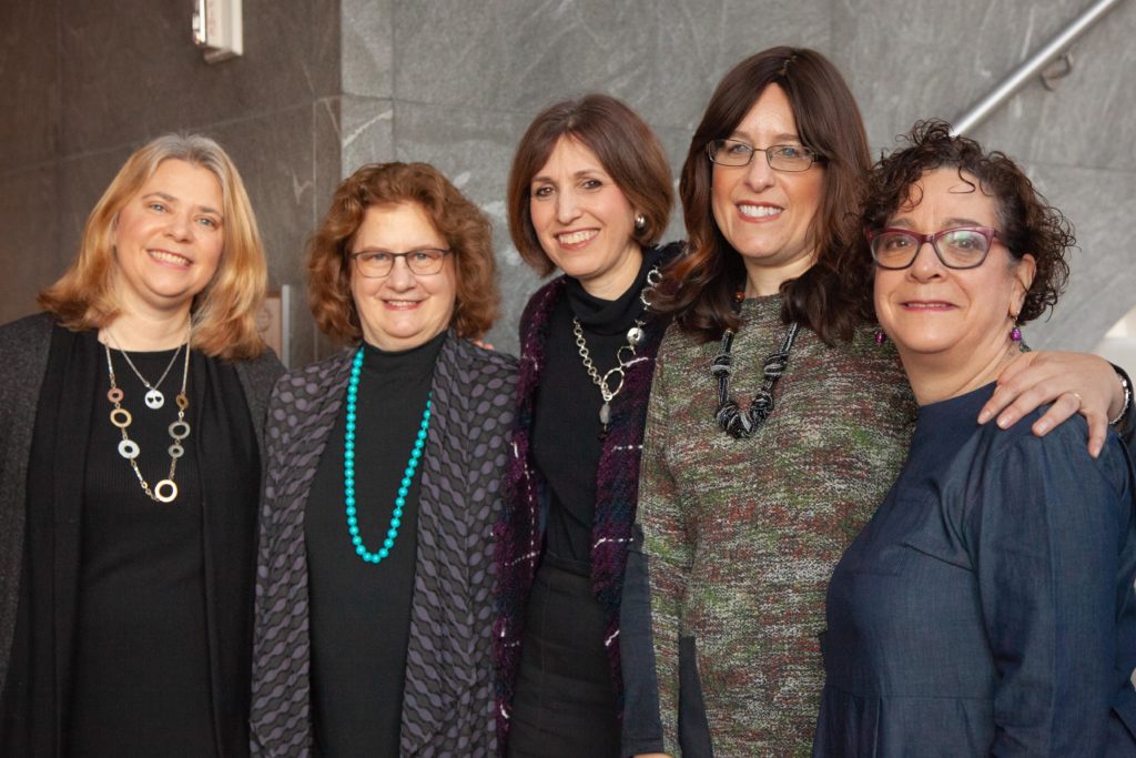 First photo: Clockwise from center- Debbie Niderberg, Esther Kramer, Dr. Rona Novick, Claire Wurtzel, Elizabeth Fox. Second photo: From left: Margaret Sarro, Elizabeth Fox, Debbie Niderberg, Sara Diament, Elyn Rosenthal.